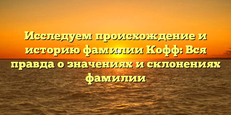 Фамилия Кофф является достаточно распространенной в разных уголках мира. Однако, мало кто знает, что ее происхождение и история имеют интересные особенности.