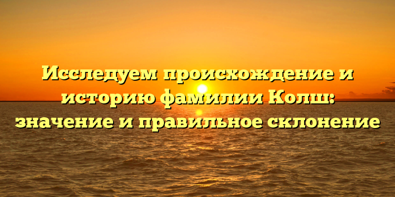 - Фамилия Колш: происхождение, история и правила ее склонения – все, что нужно знать!
