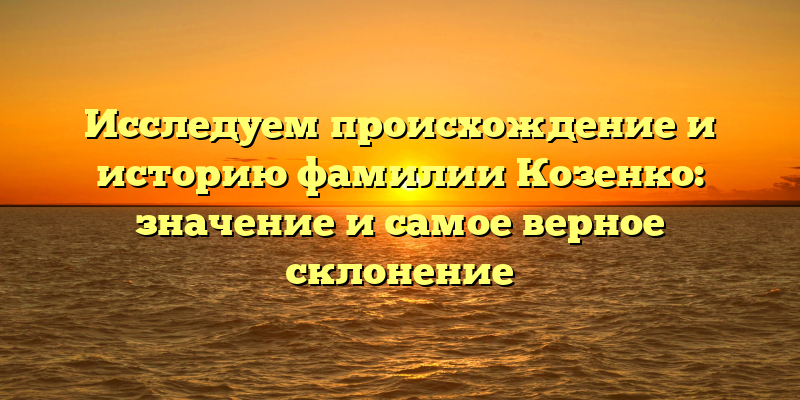 Фамилия — это не только наша бирка, но и история наших предков. Многие из нас задумывались о происхождении своей фамилии. В этой статье мы исследуем историю и происхождение фамилии Козенко, которая встречается в Украине и России.