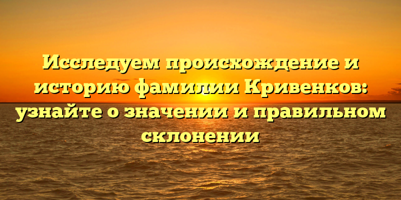 - Раскрываем тайны истории фамилии Кривенков: значимость и правила склонения