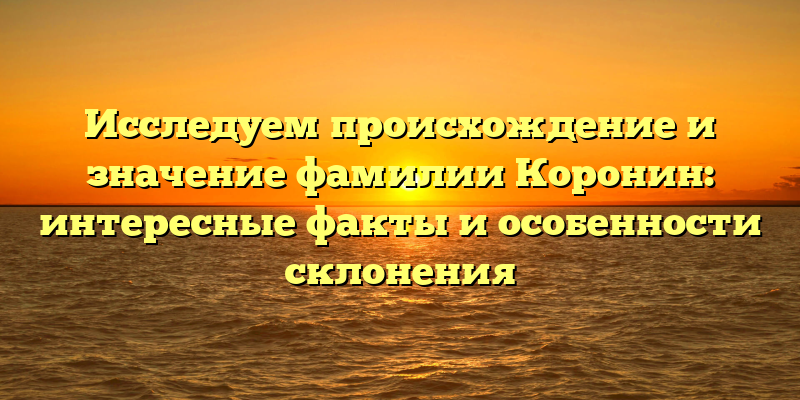 - Раскрываем тайны фамилии Коронин: происхождение и значение, уникальные черты склонения