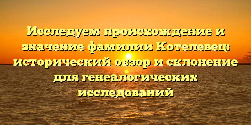 Также мы выяснили, что фамилия Котелевец имеет несколько вариантов написаний и может быть склонена в соответствии с правилами русского языка. Эта информация очень важна для генеалогических исследований и поможет нам лучше понять свою родословную.