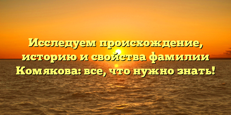 - Раскрываем тайны фамилии Комякова: от истории до уникальных свойств в деталях!