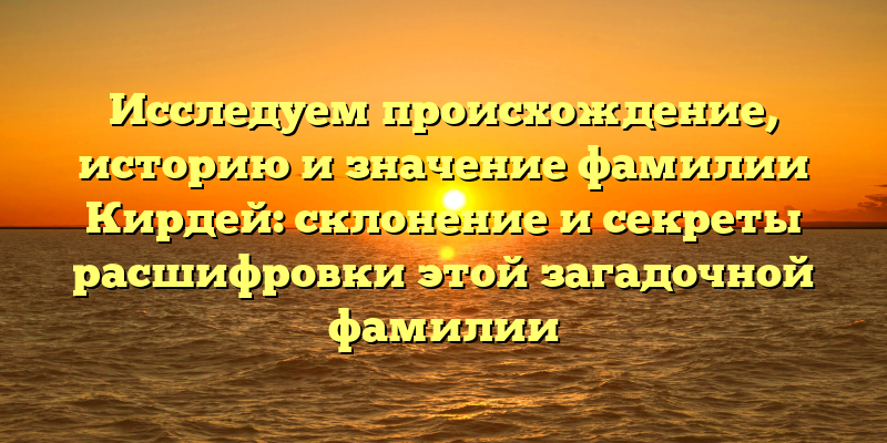 - Кирдей: исследование происхождения и истории фамилии, склонение и расшифровка ее тайн