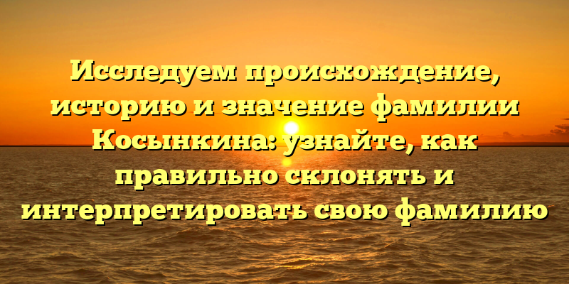 - Детальное исследование происхождения и значения фамилии Косынкина: советы по правильному склонению и толкованию вашей фамилии