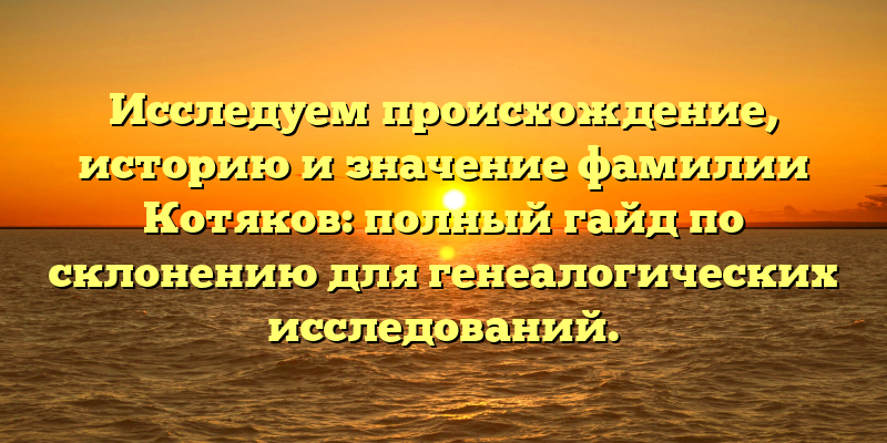 - Раскрываем тайны фамилии Котяков: генеалогический гайд о происхождении, истории и склонении для исследователей
