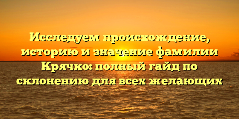 - Полный гайд по происхождению, истории и склонению фамилии Крячко: узнайте об истоке своей фамилии