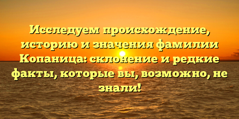 Раскрываем тайны фамилии Копаница: история, значения и редкие факты, о которых вы не слышали!