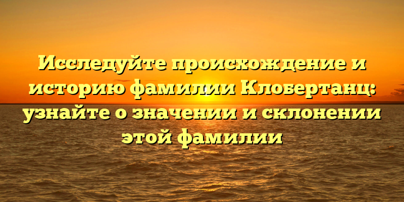 Фамилия Клобертанц существует уже много столетий и до сих пор вызывает интерес и изучение. Изначально она появилась в Германии и происходит от имени Клобертанц, что означает «глухой колоколщик».