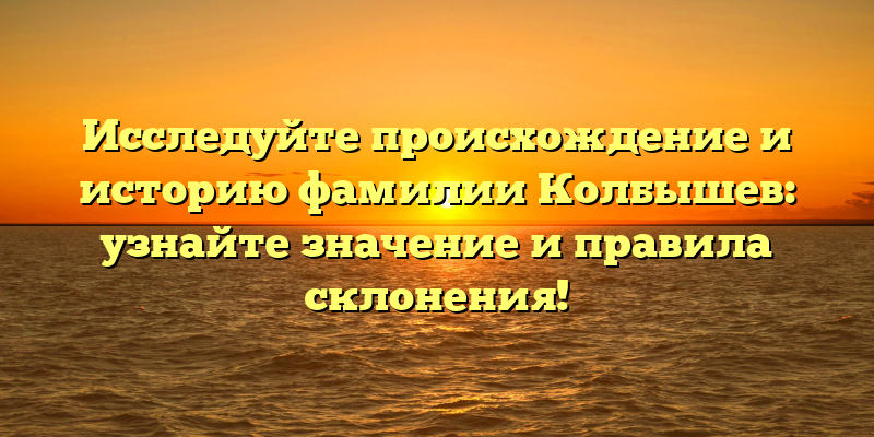 Узнайте всю правду о фамилии Колбышев: исследование происхождения и истории, значение и правила склонения в одной статье!