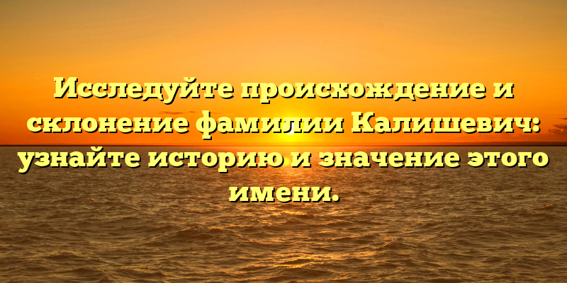 Склонение фамилии Калишевич, как и других фамилий, может быть вероятно связано с ее происхождением. Однако, чтобы узнать более точную информацию о происхождении фамилии Калишевич, необходимо обратиться к истории и значению имени.