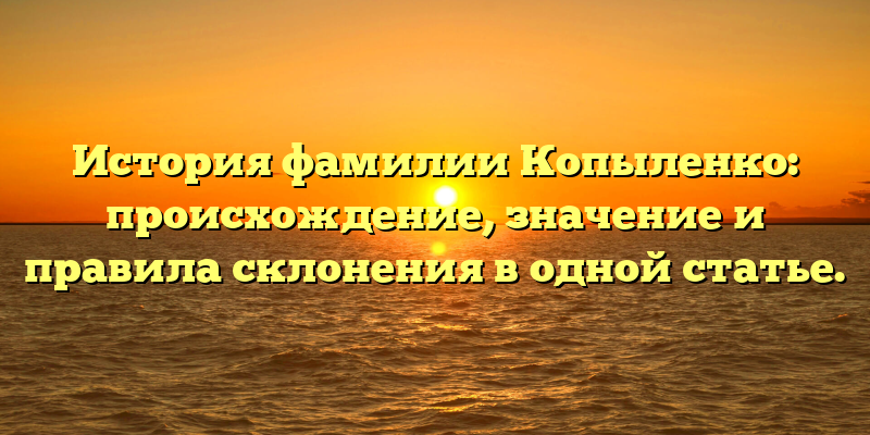 - Погружаемся в историю фамилии Копыленко: происхождение, значение и важность правильного склонения.