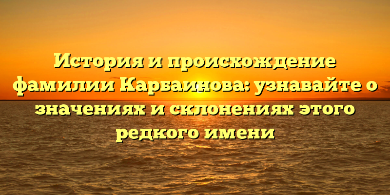 - Узнайте всю правду об истории и происхождении фамилии Карбаинова: значения, склонения и уникальные особенности имени