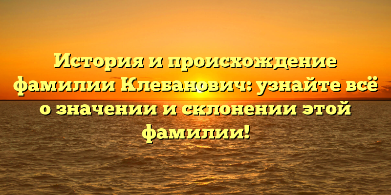 - Отслеживаем истоки: узнайте про историю и значение фамилии Клебанович в нашей статье!