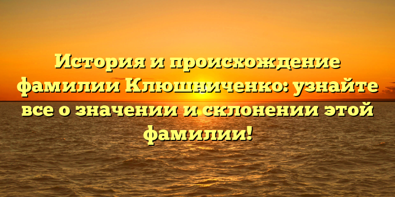 - Познакомьтесь с историей и происхождением фамилии Клюшниченко: раскрываем тайны значения и склонения!