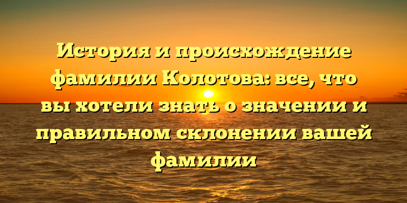 Изучаем историю происхождения фамилии Колотова: значимость и правильное склонение в одной статье