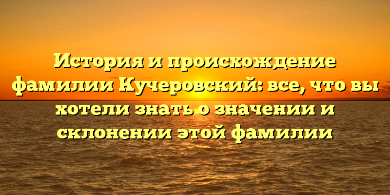 Если вы хотите узнать больше о значении и склонении фамилии Кучеровский, то вам обязательно стоит продолжить чтение данной статьи.