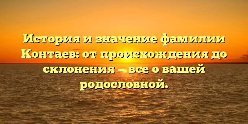 Если вы исследуете свою родословную и фамилия Контаев входит в нее, этот материал даст вам обширные сведения о происхождении и значении этой фамилии, а также поможет вам разобраться с тем, как правильно ее склонять.