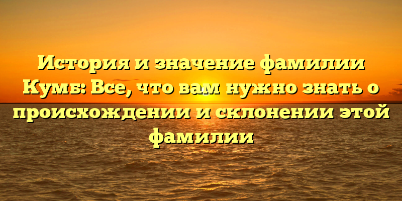 Фамилия Кумб имеет довольно интересную историю. Если вы когда-либо задумывались о происхождении своей фамилии, то эта статья точно будет вам интересна. В этой статье мы расскажем о происхождении и склонении фамилии Кумб.
