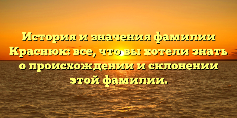 - Погружение в прошлое: узнайте все о происхождении и склонении фамилии Краснюк с нашей подробной исторической статьей