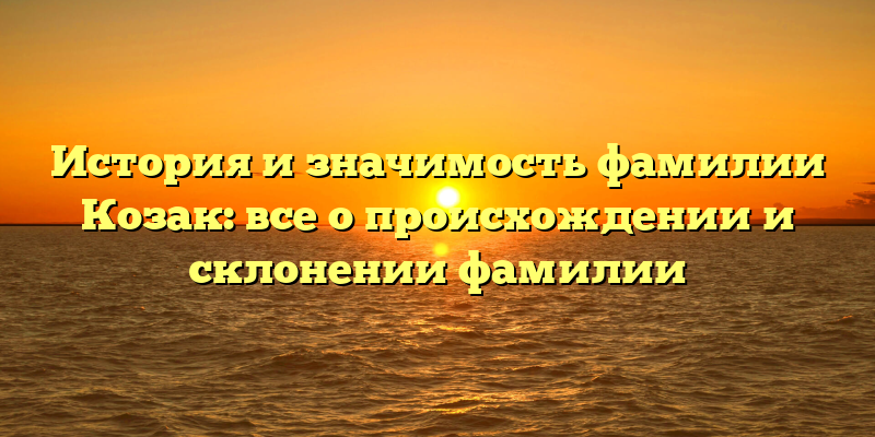 В данной статье мы рассмотрим историю и происхождение фамилии Козак, а также ее склонения и значимость в современном мире.