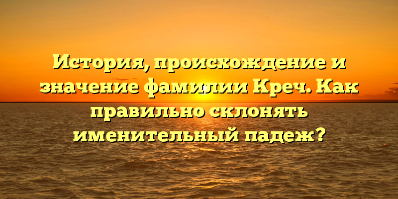 - Фамилия Креч: происхождение, история и правильное склонение в именительном падеже