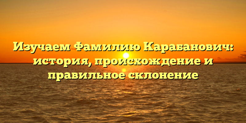 - Фамилия Карабанович: происхождение и история, полезные советы по правильному склонению
