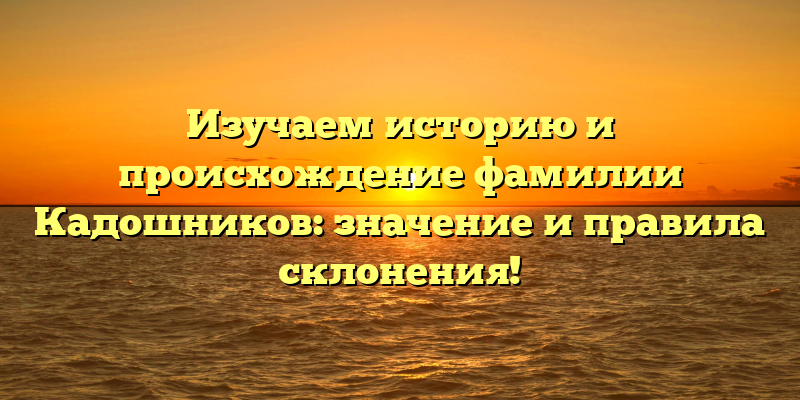 Познакомьтесь с историей фамилии Кадошников: значение и правила склонения в одной статье.