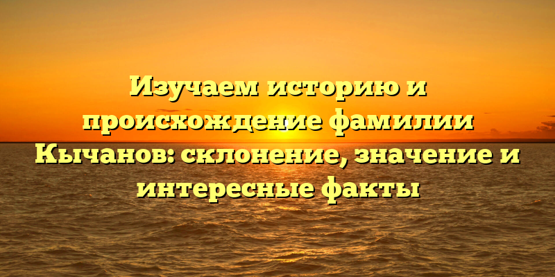 Фамилия Кычанов – одна из самых распространенных среди населения России. Если вы тоже являетесь ее обладателем или интересуетесь историей рода, то эта статья будет для вас полезной и интересной. В ней мы рассмотрим происхождение, склонение и значение фамилии, а также выясним несколько интересных фактов, связанных с ней. Начнем!