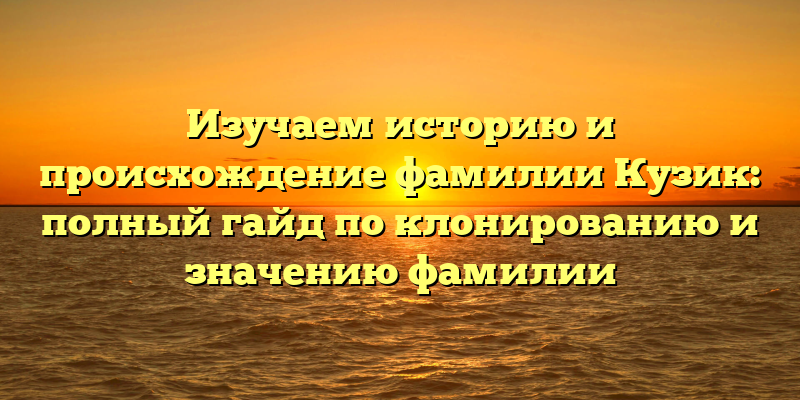 - Прикоснись к корням своей истории с полным руководством по происхождению и значению фамилии Кузик: узнайте, как клонировать свой род и сохранить свою наследственность.