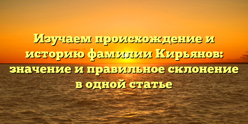 Исследуем происхождение и историю фамилии Кирьянов: значимость и правильная склоняемость в одной статье