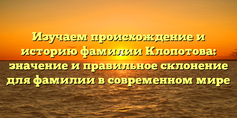 - Фамилия Клопотова: происхождение, история и правильное склонение в современном мире — SEO заголовок для статьи.
