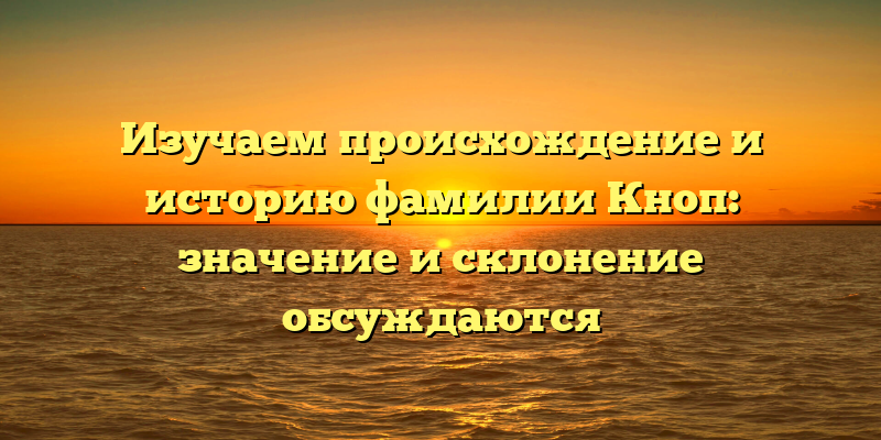 - Фамилия Кноп: происхождение, история и значение — все, что вы хотели знать!