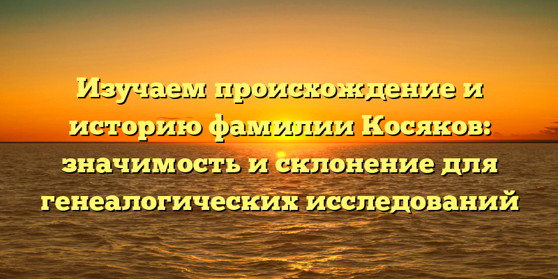 - Фамилия Косяков: история происхождения и значение для генеалогических исследований
