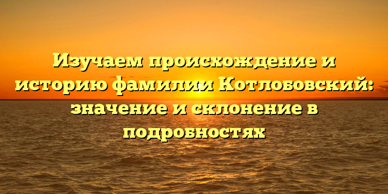 - Раскрываем тайны происхождения и истории фамилии Котлобовский: значение и склонение в полном объеме