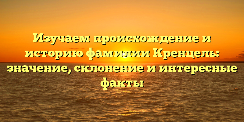 - Раскрываем тайны фамилии Кренцель: история, происхождение и увлекательные факты