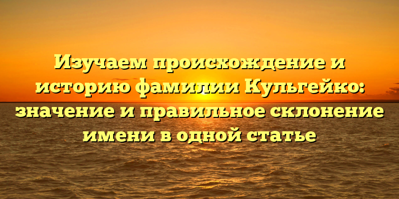 - Раскрываем тайны фамилии Кульгейко: история, значение и правильное склонение имени в одной статье