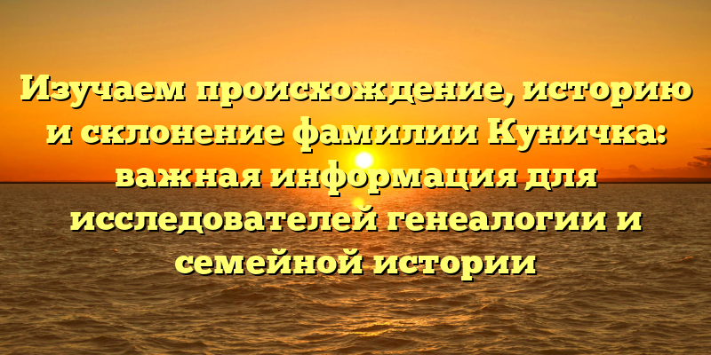 - Полное руководство по фамилии Куничка: происхождение, история и склонение для генеалогов и любителей семейной истории