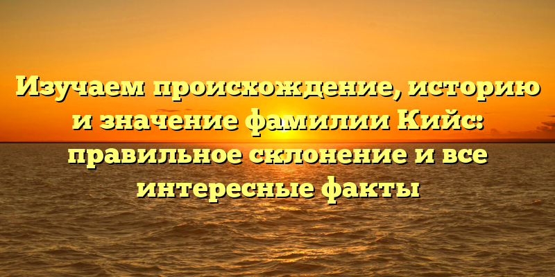 - Раскрываем тайны фамилии Кийс: узнайте историю, происхождение и правильное склонение этой уникальной фамилии.