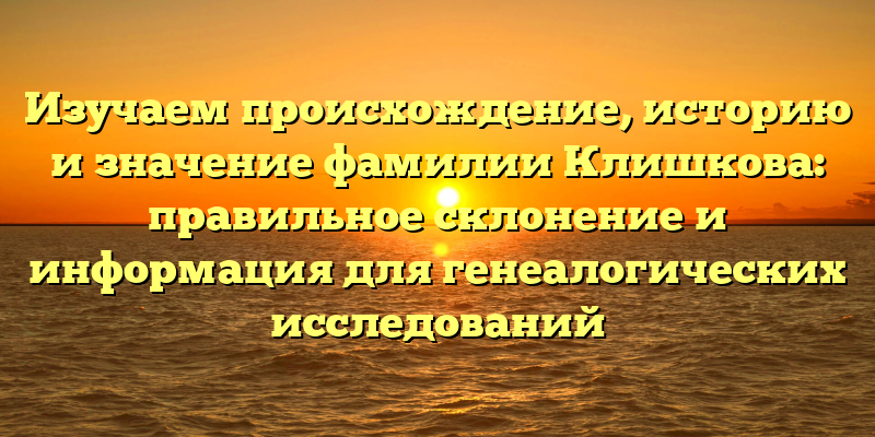 Глубокое погружение в прошлое: Исследуем происхождение и историю фамилии Клишкова для генеалогических исследований