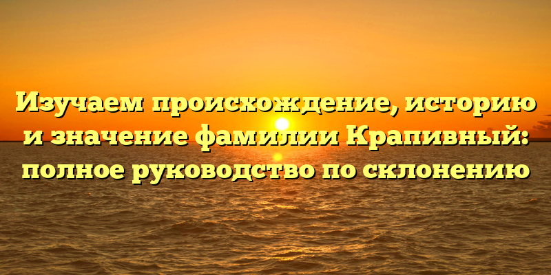Фамилия Крапивный: история, происхождение и значение. Полное руководство по склонению для исследования своих корней