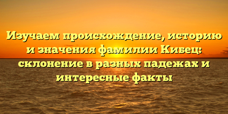 - Фамилия Кибец: история, происхождение, значения и склонение в разных падежах — полный гид