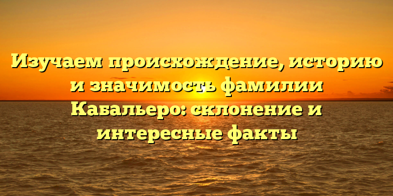 - Погружение в историю фамилии Кабальеро: узнаем происхождение и значимость, а также интересные факты