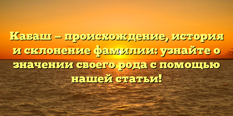Кабаш: происхождение, история и склонение фамилии – раскрываем тайны вашего рода