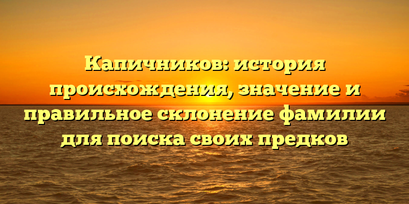Если вы являетесь носителем фамилии Капичников или ищете своих предков, то, возможно, хотели бы узнать больше об истории происхождения этой фамилии, ее значении и правильных способах склонения в различных падежах.