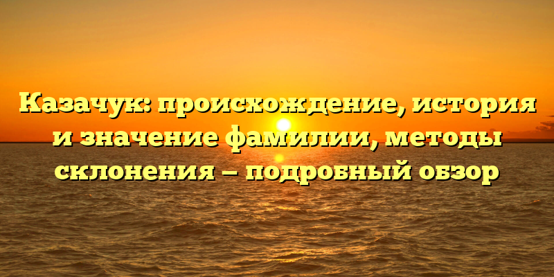 В этой статье мы рассмотрим происхождение фамилии Казачук, ее историческое значение, а также методы его склонения. Вы узнаете, как изменяется эта фамилия в различных падежах и склонениях в украинском и русском языках.