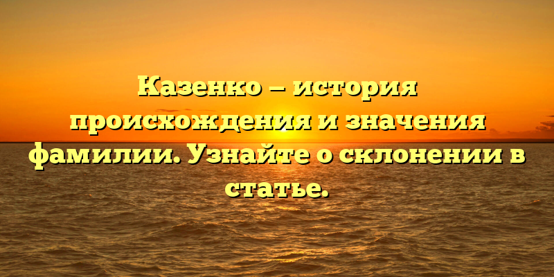 Казенко — это русская фамилия, которую носят многие люди в России и за её пределами. Она имеет давнюю историю своего происхождения. В данной статье мы расскажем о том, как возникла фамилия Казенко, что она значит и как её правильно склонять.