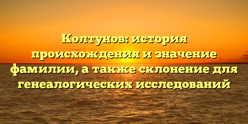 - Раскрываем тайны фамилии Колтунов: история, значение и склонение для генеалогических исследований