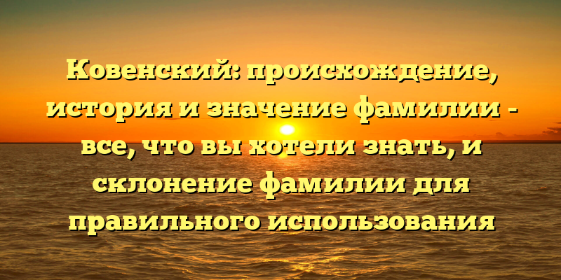- Ковенский: происхождение и история фамилии, ее значение и правильное склонение для использования – обзор статьи.