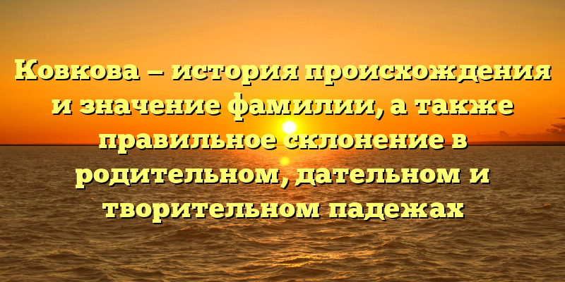 - Ковкова: происхождение фамилии и правильное склонение в родительном, дательном и творительном падежах — путеводитель для грамотного употребления имени.